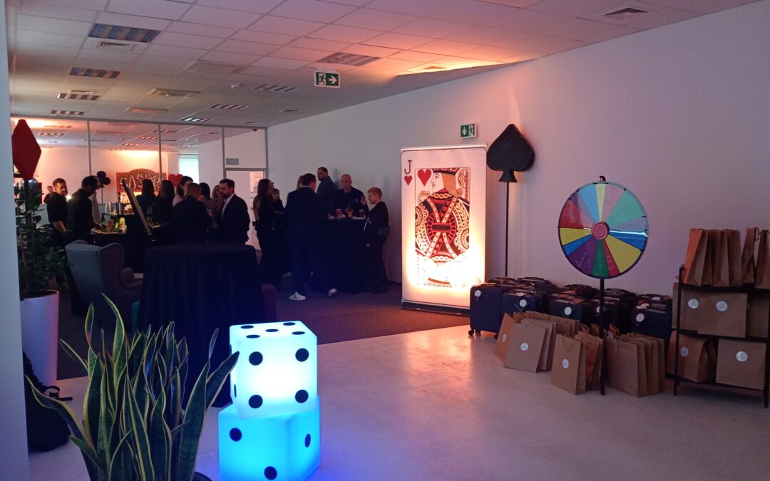 Przestrzeń budynku na kilka godzin zamieniła się w energetyczny klimat inspirowany Las Vegas – z teleturniejowymi grami, Kołem Fortuny i przestrzenią do swobodnych rozmów o rynku, potrzebach najemców i kierunkach rozwoju.